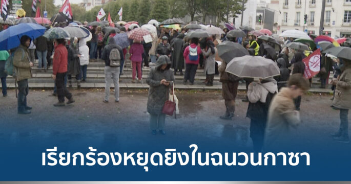 ผู้ชุมนุมในเมืองนองต์ ของฝรั่งเศส เดินขบวนประท้วง เรียกร้องให้มีการหยุดยิงในฉนวนกาซาทันที