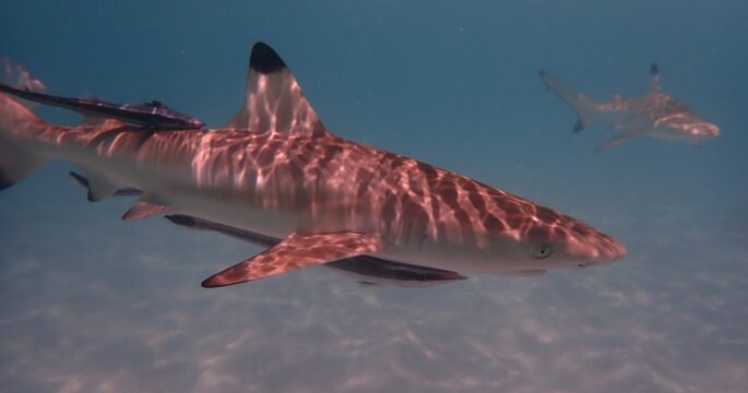 พบฉลามครีบดำ 158 ตัว ว่ายเต็มอ่าวมาหยา