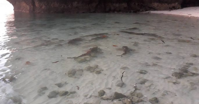ศูนย์ปฏิบัติการอุทยานทางทะเลจังหวัดตรัง เผยแพร่ภาพฉลามหูดำจำนวนมากหน้าหาดอ่าวมาหยาเขตอุทยานแห่งชาติหาดนพรัตน์ธาราหมู่เกาะพีพี จังหวัดกระบี่