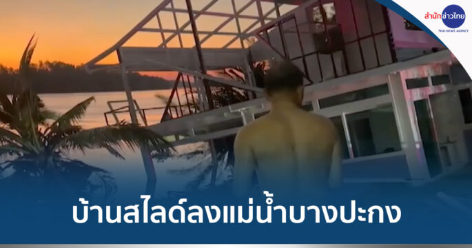 ขนของหนีตายกลางดึก! บ้านริมแม่น้ำบางปะกง สไลด์ทรุดตัวลงแม่น้ำ เสียหายรวม 6 หลัง