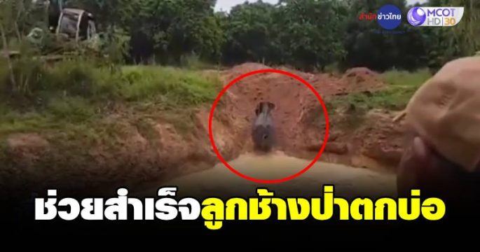 เจ้าหน้าที่ช่วยลูกช้างป่าตกสระน้ำลึก 3 ม. กลางสวนผลไม้ จ.ฉะเชิงเทรา คาดลื่นไถลขณะใช้งวงกินน้ำในสระ สุดท้ายช่วยสำเร็จ เดินเข้าป่าตามฝูงแม่ช้างไป
