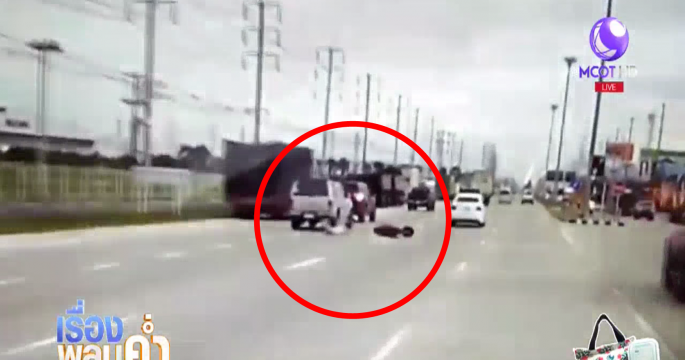 กล้องหน้ารถจับภาพนาทีกระบะเบี่ยงลงจากมอเตอร์เวย์เข้าถนนสิริโสธร เฉี่ยวชนจักรยานยนต์ที่ขี่มาทางตรงเสียหลักพลิกคว่ำ เจ็บสาหัส ก่อนเร่งเครื่องหนี ตำรวจเร่งตามตัวมาดำเนินคดี