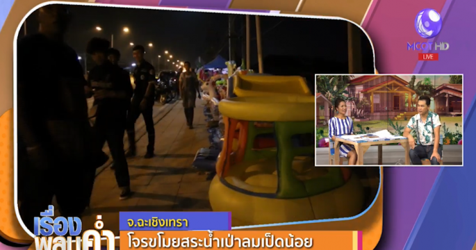คนร้ายย่องมาขโมยสระว่ายน้ำเป่าลมรูปเป็ดที่แม่ค้าวางขายอยู่ริมทางกับสามีพิการเดินไม่ได้ พลเมืองดีผ่านมาพบเห็น คาดเป็นคนในพื้นที่