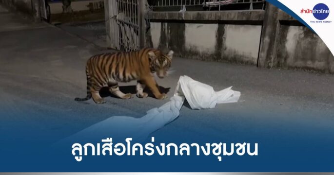 ลูกเสือโคร่ง จากไหนไม่รู้ เข้ามานอนเล่นอยู่ในบ้านกลางดึก เจ้าของบ้านต้องเรียกตำรวจ กู้ภัย เข้ามาช่วย