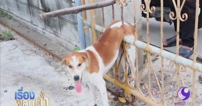 ชาวบ้านฉะเชิงเทราพยายามช่วยเจ้าตูบจอมซน จะกระโดดลอดประตูเหล็กดัด แต่ตัวกลับค้างอยู่ครึ่งตัว ตั้งแต่บ่ายจนเย็น ยังไม่สำเร็จ สุดท้ายต้องแจ้งกู้ภัยมาช่วย