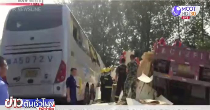 เจ้าหน้าที่จีนเปิดเผยวันนี้ว่า เกิดเหตุรถโดยสารที่มีผู้โดยสารอยู่แน่นคันรถที่เกิดปัญหายางแบนชนเข้ากับรถบรรทุกทำให้มีผู้เสียชีวิตอย่างน้อย 36 รายและบาดเจ็บอีก 36 ราย