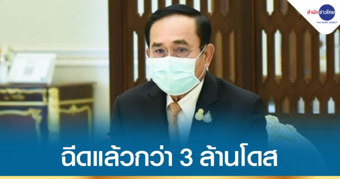 นายกรัฐมนตรี เผยประเทศไทยเดินหน้าฉีดวัคซีนโควิด-19 ให้แก่ประชาชน รวมกว่า 3 ล้านโดสแล้ว เป็นอันดับต้นๆ ของอาเซียน
