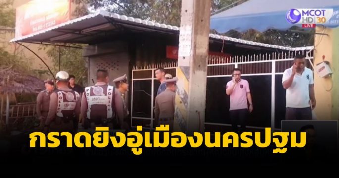 ชายอ้วน-ผอม ใช้อาวุธปืนกราดยิงหน้าประตูร้านช่างแมว กลางเมืองนครปฐม กว่า 30 นัด ก่อนใช้อาวุธจ่อแฟนเก่า กระชากขึ้นรถยนต์เก๋งสีขาวหลบหนีไป