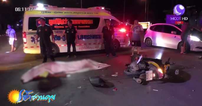 ชายชาวเมียนมากลับจากงานเลี้ยงปีใหม่อยู่ในสภาพมึนเมา ขี่ จยย. ลูกสาวซ้อนท้าย พุ่งเสยกระบะ อาการสาหัสทั้งคู่