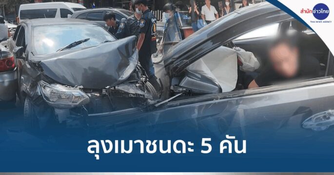 สาวเมาซิ่งรถหรู ย้อนศร 5 กม. ชนระเนระนาดพังยับ 10 คัน