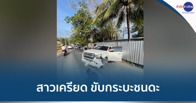 สาวเครียดทะเลาะสามี ขับกระบะชนดะกลางถนน