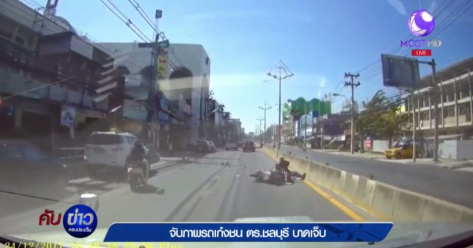 กล้องหน้ารถจับภาพรถยนต์เก๋งขึ้นเลนขวาเหมือนตั้งใจชนตำรวจเมืองชลบุรี ล้มลงกับพื้นบาดเจ็บสาหัส แล้วหนีไม่ลงมาช่วยเหลือ ขณะที่รองผู้กำกับการจราจร เผยมีความผิด มีโทษโดยไม่รอลงอาญา 3 เดือน