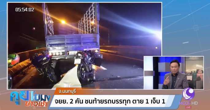 จยย.ชนท้ายรถบรรทุกเสียชีวิตคาที่ บนถนนลำลูกกา มุ่งหน้าคลอง 4 จ.ปทุมธานี ส่วนที่ จ.อุบลราชธานี กระบะขนผักเสียหลักหลุดโค้งชนเกาะกลางถนน ถุงผักกระจายเกลื่อนถนน