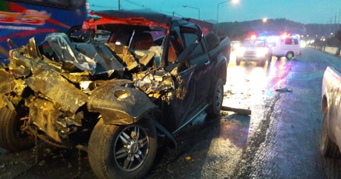 รถกระบะทหารกลับจากไปร่วมงานแต่งงาน พุ่งชนท้ายรถพ่วงกำลังขับขึ้นดอยขุนตาล จ.ลำปาง มีผู้บาดเจ็บ 7 ราย