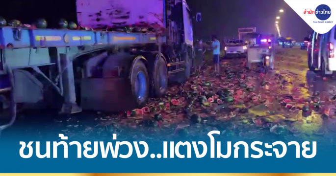 เกิดอุบัติเหตุรถกระบะขนเเตงโม หลับในชนท้ายรถพ่วง 22 ล้อ แตงโมกระจายแดงเกลื่อนบนถนนพระราม 2 ขาลงใต้ ตำบลบางแก้ว อำเภอเมืองสมุทรสงคราม มีผู้บาดเจ็บ 2 ราย ซึ่งเป็นคนขับและภรรยา