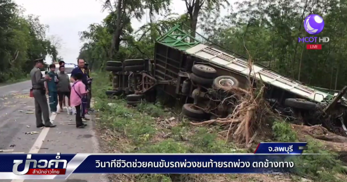 เกิดรถพ่วงบรรทุกอ้อย 2 คัน ชนท้ายกันอย่างรุนแรง ก่อนพุ่งตกข้างทาง ทำให้คนขับถูกอัดก๊อปปี้ติดอยู่ภายในซากรถ ต้องเร่งช่วยชีวิตเป็นการด่วน