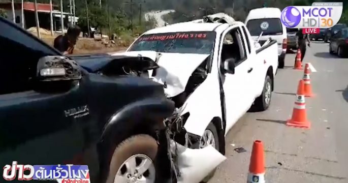 โค้งอาถรรพ์! หนุ่มโรงงานรีบไปทำงาน ซิ่งกระบะข้ามเลนชนประสานงากระบะอีกคันเสียงดังสนั่น เสียชีวิต 3 ราย บาดเจ็บอีก 8 ราย