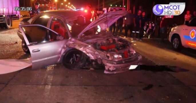 เก๋งชนท้ายรถติดไฟแดงฉะเชิงเทรา 4 คันรวด สามี-ภรรยาดับพร้อมลูกในท้อง
