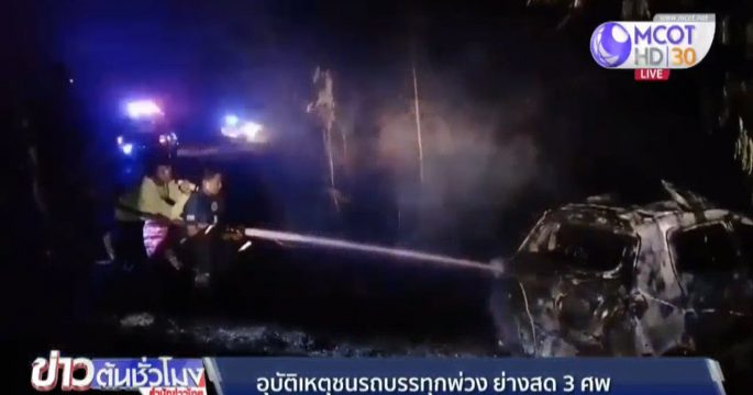 อุบัติเหตุชนรถบรรทุกพ่วง ย่างสด 3 ศพ