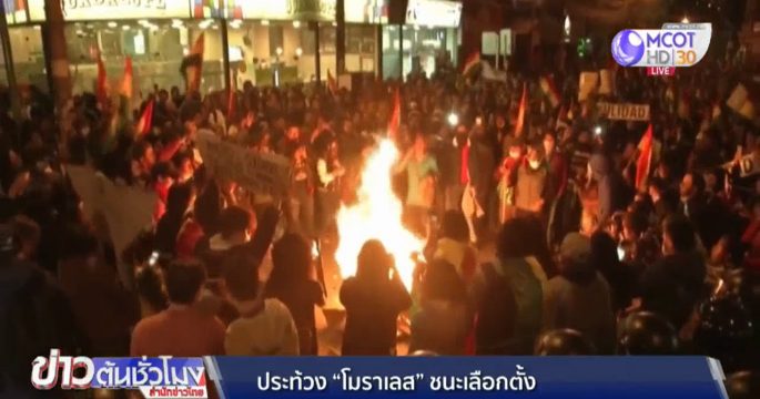 โบลิเวีย 26 ต.ค.-ชาวโบลิเวียพากันหลั่งไหลออกมาตามท้องถนนในกรุงลาปาซ เพื่อประท้วงผลการเลือกตั้งที่ปรากฎออกมาว่า ประธานาธิบดีอีโว โมราเลส ได้รับชัยชนะครองอำนาจเป็นสมัยที่ 4 ติดต่อกัน ซึ่งนับเป็นการครองอำนาจติดต่อกันเป็นเวลาเกือบ 2 ทศวรรษ ไม่เพียงในกรุงลาปาซเท่านั้น เมืองใหญ่ ๆ หลายเมืองของชิลีก็มีผู้คนออกมาประท้วงจำนวนมากเช่นกัน นายโมลาเรสคว้าชัยชนะเหนือ นายคาร์ลอส เมซา คู่แข่ง เพียง 10.57 จุดเกือบจะต้องชิงชัยกันในรอบ 2 คณะผู้สังเกตการณ์เลือกตั้ง พรรคฝ่ายค้านและรัฐบาลต่างชาติวิพากษ์วิจารณ์ว่าการเลือกตั้งในโบลิเวีย ไม่โปรงใส สหภาพยุโรป สหรัฐ บราซิล อาร์เจนตินาและโคลอมเบีย เรียกร้องให้มีการเลือกตั้งในรอบ 2 เพื่อหลีกเลี่ยงความไม่พอใจของประชาชน ซึ่งอาจนำมาซึ่งความวุ่นวายได้.-สำนักข่าวไทย