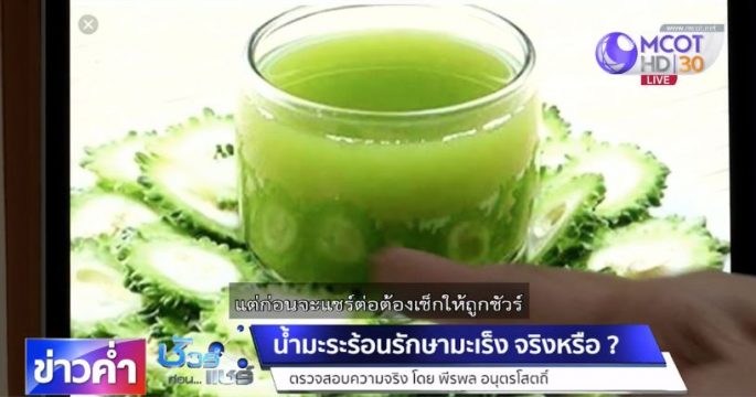 บนสังคมออนไลน์แชร์ข้อความแนะนำให้ใช้มะระต้มร้อนๆ สามารถฆ่าเซลล์มะเร็งได้ เรื่องนี้จริงหรือไม่ ? ติดตามจากศูนย์ชัวร์ก่อนแชร์