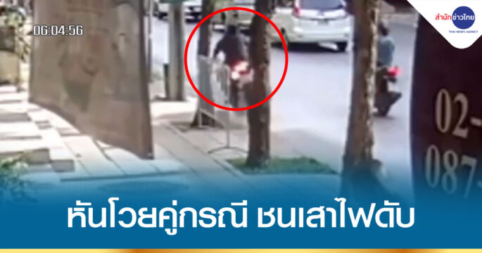 หนุ่มใหญ่วัย 47 ปี ขี่รถจักรยานยนต์ หันไปโวยรถคันหลังไม่ดูทาง สุดท้ายเสียหลักชนเสาไฟฟ้าดับ ด้านคู่กรณีอ้างโดนปาดหน้า