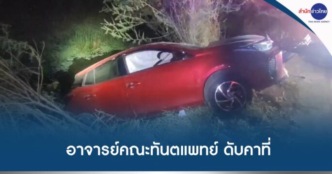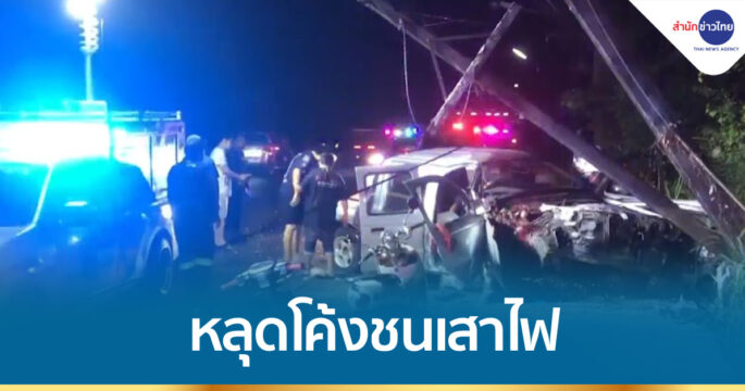 เก๋งเสียหลักชนเสาไฟฟ้าข้างทาง อ.คลองหลวง จ.ปทุมธานี สาววัย 28 อาจารย์คณะทันตแพทย์ เสียชีวิตคาที่