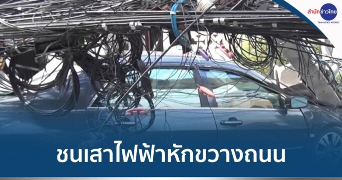 รถเก๋งพุ่งชนเสาไฟฟ้าแรงสูงล้มขว้างถนน กลางเมืองเชียงใหม่ ต้องปิดการจราจรชั่วคราว เปลี่ยนเสาไฟฟ้าใหม่ กระทบย่านเศรษฐกิจ