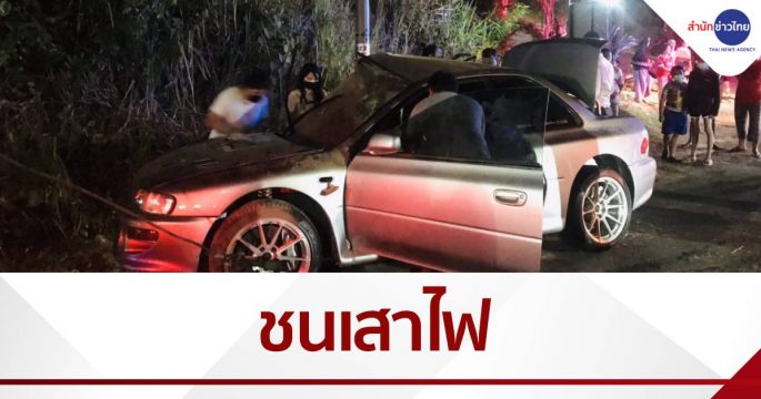 หนุ่มเมาหนักซิ่งเก๋งหนีตำรวจชนเสาไฟฟ้าแรงสูงขาดครึ่ง มีผู้ได้รับบาดเจ็บ 2 ราย