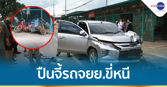 กระบะพุ่งชน ตาวัย 75 ปี ขี่ จยย. พ่วงข้าง เสียชีวิต คนขับอาศัยจังหวะชุลมุน ใช้ปืนจี้ชิงรถ จยย. ขี่หลบหนี ตำรวจตรวจสอบในรถ พบปืนยาว 2 กระบอก กระสุน 30 นัด