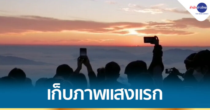 นักท่องเที่ยวจำนวนมากขึ้นไปสัมผัสลมหนาวและชมแสงแรกของปี 2565 บนวนอุทยานภูชี้ฟ้า แหล่งท่องเที่ยวชื่อดังของจังหวัดเชียงราย ซึ่งตั้งอยู่ชายแดนไทย- สปป.ลาว ในตำบลตับเต่า อำเภอเทิง และเมื่อแสงแรกโผล่ ทุกคนต่างพากันบันทึกภาพไว้เป็นที่ระลึก