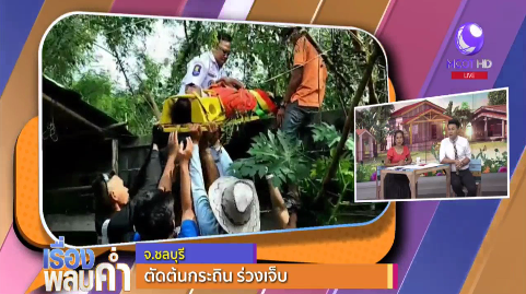ลุงวัย 60 ปีนขึ้นไปตัดกิ่งไม้ต้นกระถินยักษ์ สูงประมาณ 4 เมตร พลาดท่าร่วงเจ็บ