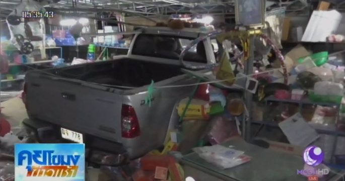 รถกระบะเสียหลังพุ่งเข้าชนร้านขายของริมถนน จ.ชลบุรี เดชะบุญ เจ้าของร้านและภรรยาดึงตัวลูกสาวที่กำลังนั่งเล่นในร้านหลบทัน ส่วนคนขับรถบาดเจ็บเล็กน้อย