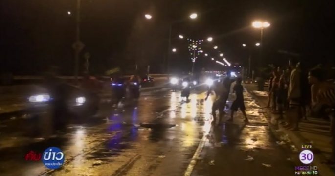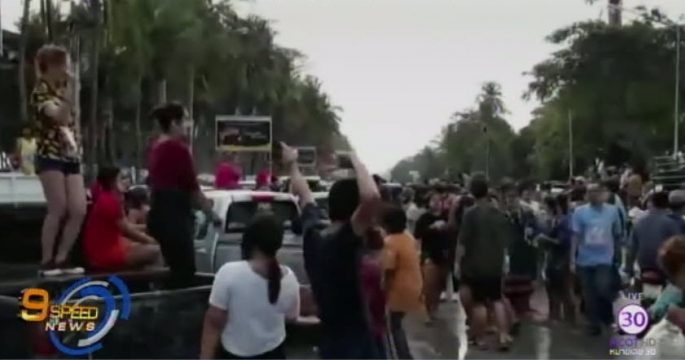 เริ่มแล้วงานวันไหลบางแสน จังหวัดชลบุรี วัยรุ่นจำนวนมากออกมาเล่นน้ำ บนถนนเลียบชายหาดบางแสน ตำบลแสนสุข อำเภอเมือง อย่างสนุกสนาน