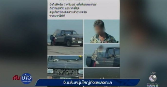 จับปรับหนุ่มใหญ่ 1,000 บาท หลังชาวเน็ตวิจารณ์ยับ ทิ้งขยะลงทะเลหน้าตาเฉย พร้อมให้บำเพ็ญประโยชน์เก็บขยะ 2 ถุง