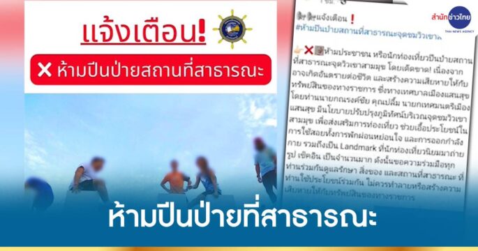 ชาวเน็ตแห่แชร์ภาพ นักท่องเที่ยวปีนป่ายป้ายจุดชมวิวบนเขาสามมุข พร้อมวิจารณ์ยับทำพฤติกรรมไม่เหมาะสม และเป็นตัวอย่างที่ไม่ดีให้แก่เด็กและเยาวชน