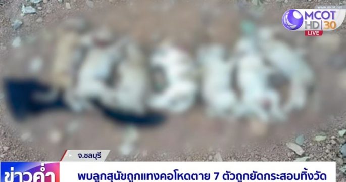 พบลูกสุนัข 7 ตัว ถูกแทงตายในสภาพที่มีเลือดเกรอะกรังไปทั้งตัว ที่ อ.บางละมุง จ.ชลบุรี เบื้องต้นไม่มีใครทราบที่มาที่ไปของสุนัขทั้งหมด และไม่ทราบตัวผู้ก่อเหตุ