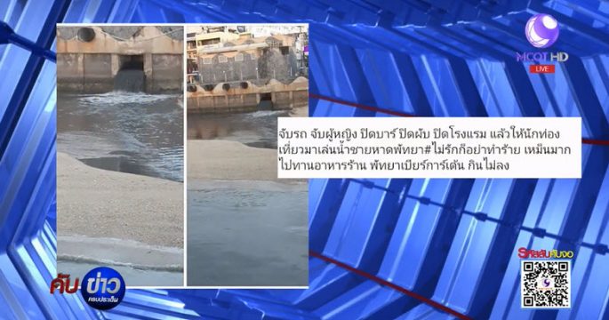 เมืองพัทยา แจงภาพน้ำเสียระบายลงทะเล เกิดจากปัญหาน้ำเสียค้างท่อ เมื่อมีน้ำฝนไหลไปผสมกับน้ำเสียที่ค้างอยู่ ทำให้คุณภาพน้ำมีความขุ่นข้น ก่อนจะไหลล้นและระบายลงสู่ทะเล ขณะนี้กำลังเร่งซ่อมแซมระบบ