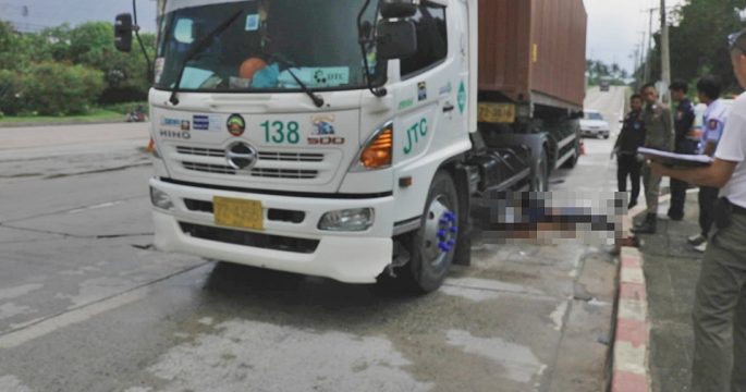 ชลบุรี 12 พ.ค.-หนุ่มพนักงานชิปปิ้งขี่รถจักรยานยนต์เลี้ยวออกมาจากทางแยก ถูกรถบรรทุกพ่วง 18 ล้อ เฉี่ยวชนทับร่างดับสยอง เมื่อเวลา 13.00 น.วันนี้ (12 พ.ค.) ศูนย์วิทยุหน่วยกู้ภัยศีลธรรม สมาคมบ้านบึง จุดบ่อวิน ได้รับแจ้งเกิดอุบัติเหตุรถ 18 ล้อเฉี่ยวชนรถจักรยานยนต์ บนถนนภายในนิคมอมตะซิตี้ หมู่ 3 ต.บ่อวิน อ.ศรีราชา จ.ชลบุรี เหตุเกิดบริเวณทางสามแยก พบรถบรรทุก 18 ล้อ หมายเลขทะเบียนส่วนหัว 72-4356 ชลบุรี และส่วนหาง 72-3816 ชลบุรี จอดอยู่ ใต้ท้องรถบรรทุกพบผู้เสียชีวิต 1 ราย ทราบชื่อคือ นายกฤตนัย ศิริสวัสดิ์ อายุ 22 ปี เป็นพนักงานชิปปิ้งของบริษัทแห่งหนึ่ง สภาพศพมีบาดแผลเจาะบริเวณกะโหลกศีรษะด้านขวา และแผลถลอกตามร่างกาย ใกล้กันพบรถจักรยานยนต์ คาวาซากิ สีเทา ทะเบียน 2 กฆ-9023 ชลบุรี ล้มคว่ำอยู่ […]