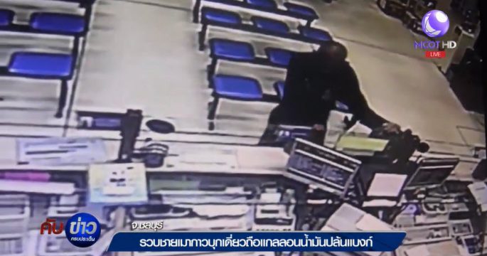 หนุ่มเก็บของเก่าเมากาว ถือแกลลอนน้ำมันบุกเดี่ยวจี้ชิงเงินธนาคาร แต่ถูกจับตัวไว้ได้ สารภาพเงินไม่พอใช้ จึงตัดสินใจซื้อน้ำมันมาเพื่อเผาธนาคารชิงเงิน