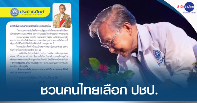 “นายหัวชวน” ร่ายความในใจ ชวนคนไทยเข้าคูหาเลือกพรรคประชาธิปัตย์ เดินหน้าสร้างการเมืองสุจริต เพื่อประเทศชาติก้าวหน้า