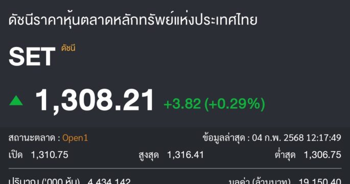 หุ้นไทยฟื้นตัว หลัง “ทรัมป์” ชะลอขึ้นภาษีเม็กซิโก-แคนาดา ออกไปอีก 1 เดือน หวั่นสงครามการค้าทำ fund flow ไหลออกไม่หยุด