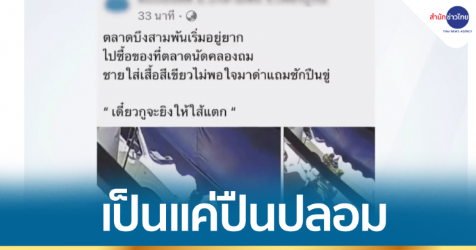 คืบหน้าเหตุการณ์ชาย 2 คนมีปากเสียงและผลักกันไปมา จนมีการชักอาวุธปืนมาข่มขู่ที่จ.เพชรบูรณ์ ปรากฏว่าอาวุธปืนที่ใช้นั้นเป็นปืนปลอม ด้านตำรวจยังไม่ตั้งข้อหาผู้ใด