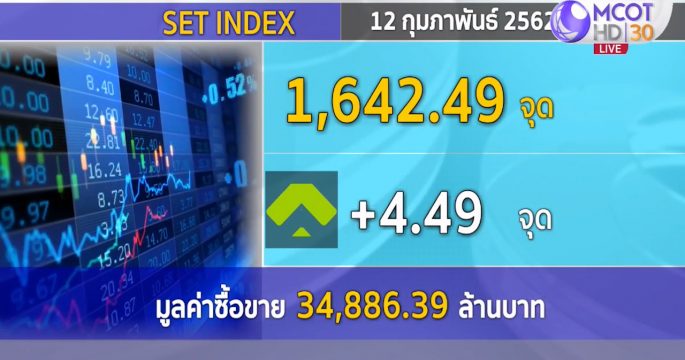 ดัชนีหุ้นไทยวันนี้ปิดที่ระดับ 1,642.49 จุด เพิ่มขึ้น 4.49 จุด หรือร้อยละ 0.27 มูลค่าการซื้อขาย 34,886.39 ล้านบาท