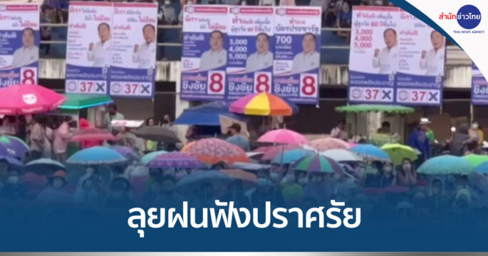 คนตากลุยฝนฟัง “ชัยวุฒิ” ปราศรัย หวังนำตากเเลนด์สไลด์ยกจังหวัด เปรยสงสารคนไทย การเมืองเเบ่งสี ขอคนตากเลือก “ลุงป้อม” ก้าวข้ามความขัดเเย้ง