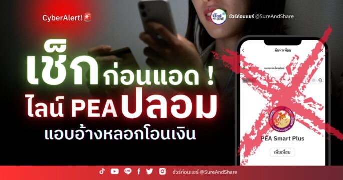 ชัวร์ก่อนแชร์ CyberAlert!🚨 : เช็กก่อนแอด ! ไลน์ PEA ปลอมระบาด แอบอ้างหลอกโอนเงิน