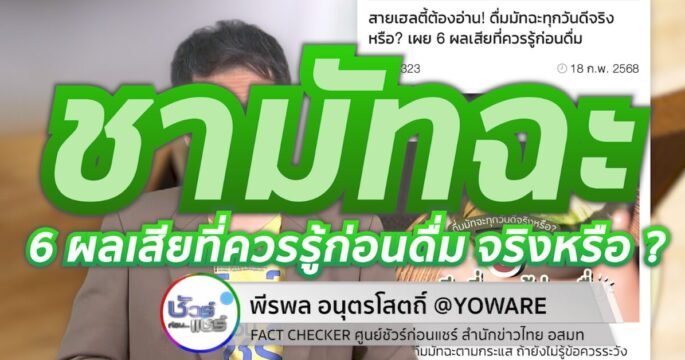 บทความนี้เรียบเรียงโดยเทคโนโลยีปัญญาประดิษฐ์ (Artificial Intelligence : AI) โดยมีเนื้อหาหลักจากคลิปวิดีโอ 21 กรกฎาคม 2568 ตามที่มีการแชร์เตือนเตือน 6 ผลเสียที่ควรรู้ก่อนดื่มชามัทฉะ เช่น ดื่มผสมนมวัว จะลดประโยชน์ของมัทฉะ มัทฉะก่อนิ่วในไต รบกวนการนอน ต้นเหตุท้องผูก ขาดน้ำ และโลหิตจาง นั้น บทสรุป : แชร์ได้ อธิบายเพิ่ม ศูนย์ชัวร์ก่อนแชร์ ตรวจสอบกับ อาจารย์ ดร.พิมพ์อร สุขแล้ว สาขาอาหาร โภชนาการ และการกำหนดอาหาร ภาควิชาคหกรรมศาสตร์ คณะเกษตร มหาวิทยาลัยเกษตรศาสตร์ (สัมภาษณ์เมื่อ 15 กรกฎาคม 2568) มัทฉะ : ดื่มอย่างไรให้ได้ประโยชน์เต็มที่ และใครบ้างที่ควรระวัง “มัทฉะ” เครื่องดื่มสีเขียวนวลที่มาพร้อมกับรสชาติอันเป็นเอกลักษณ์ ได้กลายเป็นเมนูโปรดของใครหลายคน ไม่ใช่แค่เพราะความอร่อย แต่ยังรวมถึงคุณประโยชน์จากสารต้านอนุมูลอิสระที่มีสูงกว่าชาเขียวทั่วไป อย่างไรก็ตาม บนโลกออนไลน์ก็มีการแชร์ข้อมูลเกี่ยวกับผลเสียที่อาจเกิดขึ้นจากการดื่มมัทฉะเช่นกัน บทความนี้จะพาไปตรวจสอบข้อเท็จจริงเหล่านั้น พร้อมคำแนะนำจากผู้เชี่ยวชาญ เพื่อให้เราสามารถดื่มด่ำกับเครื่องดื่มแก้วโปรดได้อย่างปลอดภัยและได้ประโยชน์สูงสุด ไขข้อข้องใจ 6 […]