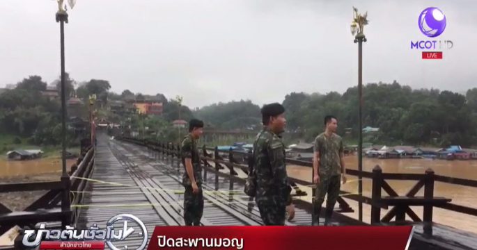 ผู้ว่าฯ กาญจนบุรี สั่งปิดสะพานไม้อุตตมานุสรณ์ หรือสะพานมอญชั่วคราว เพื่อความปลอดภัยของนักท่องเที่ยว หลังเกิดน้ำป่าหลากเข้าท่วมในพื้นที่ อำเภอสังขละบุรี