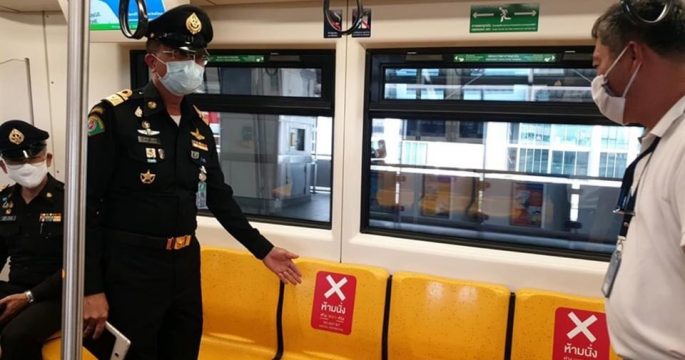ทหารช่วยเสริมกำลังเจ้าหน้าที่เทศกิจ กทม.จัดระเบียบผู้เข้าใช้บริการรถไฟฟ้าบีทีเอสในชั่วโมงเร่งด่วน 17 สถานี เข้มมาตรการป้องกันโรคโควิด-19