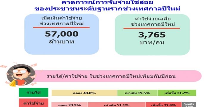 ออมสินเผยผลสำรวจค่าใช้จ่ายปีใหม่ของประชาชนฐานราก พบว่ามีการใช้จ่าย 57,000 ล้านบาท เฉลี่ยคนละ 3,765 บาท